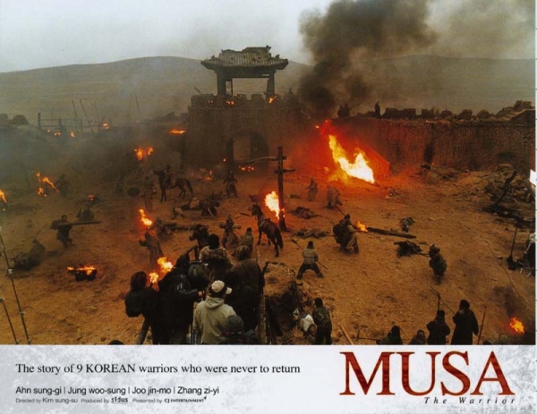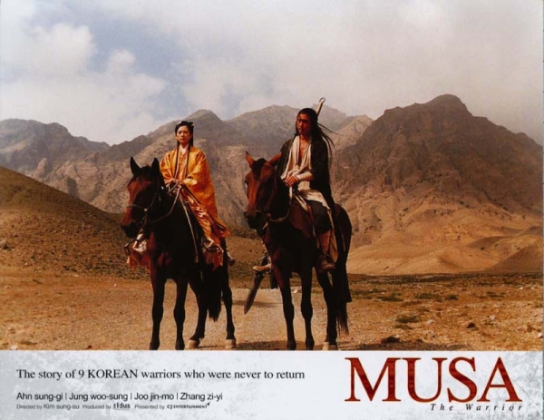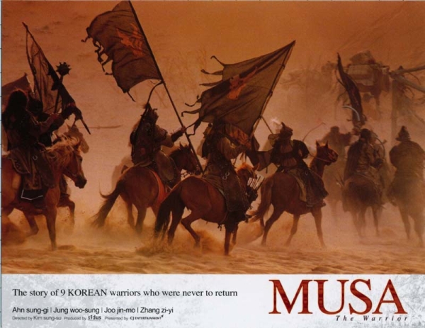 None of the films released in 2001 matched the hype and expectation generated by MUSA, a period epic set in 14th-century China. The film's plot is based on real history: shortly after the Ming Dynasty seized power in China, a Ming envoy to Korea was murdered, leading to soured relations between the two countries. MUSA is the story of a group of Korean envoys sent to China who are arrested and then sent into exile. Off in the wilderness they rescue a Ming princess. They hope that if they return her to the Ming safely, their honour and good relations between the two countries will be restored.