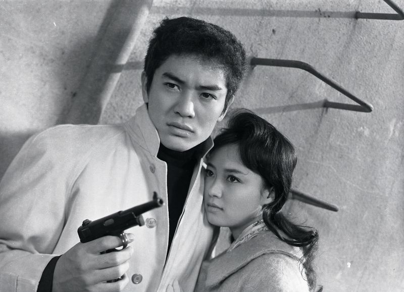 Akagi Keiichiro’s last film before his untimely death at the age of twenty-one, Ushihara Yoichi’s Kurenai no Kenju (Crimson Pistol) is also one of his best. Unlike the many Nikkatsu Action films that have little or no relationship with any known reality, but give no sign of that fact, Kurenai begins with a closeup of the lantern-jawed Tarumi Goro laconically telling a client that "professional hitmen don’t exist in Japan." Tarumi, we learn, was once a hitman himself, but injured his shooting arm. He has since set himself up as freelance trainer of hired killers. He finds his first prospective apprentice, Akagi, in a nightclub, saving a hostess (Shiraki Mari) from hoodlums who have come to reclaim her for their boss.