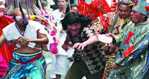 The only and best word that can explain Bangkok Loco is its uniqueness as a film of “playing” wits - playing with slangs, playing with words, playing with old genres of Asian pop culture and other movies, playing with everything that you will never know. Imagine, the challenger of Be’s drum-teacher becomes The Beatles’ Ringo Star. The opening credits parody those of Star Wars. The two-school duels are in fact familiar by all Asians as seen in Chinese swordplays. And if you are Thai, you are even more joyful with the director’s word-playing. A middle-aged man always rests his head over the police chief’s shoulder whenever he utters the word “bat-sob.” In fact, that strange man is a veteran actor named Sombat. The word “bat-sob” generally means “Shit!” in Thai, but it can literally refer to “Bat rests his head upon one’s shoulder” (Bat, the man, and “sob”, resting one’s head over something). And that brings the laughs.