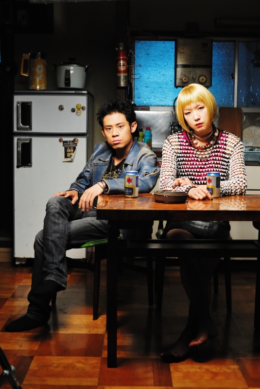 The final period, 2012, is where the story starts, however. Only five hours remain, we are told, until a comet slams into Earth, obliterating all life. A midde-aged man (Ishimaru Kenjiro) in a wheelchair tools comes across an open record store. Inside he finds the goateed manager (Omori Nao) with a nerdy customer, discussing the aforementioned punk band.