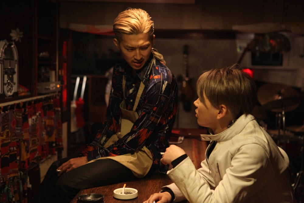 He is Gu, a bleached-blonde Shimonoseki native of Korean origin, which makes him a natural outsider in Japan’s still xenophobic society. In the opening scenes we see him navigating through a rough sea of punks and gangsters, beating some and fleeing from others.