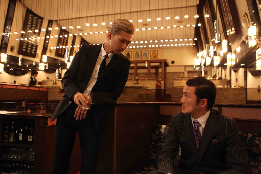 The twisty plot features a shocking crime by two of Gu’s teenage acquaintances (Nakayama Kento, Emoto Tokio) that he unwittingly provokes, a glue-and-rape party that he rudely interrupts and the key a friendly gangster (Maki Kurodo) asks him to safeguard — and ends up causing him trouble.