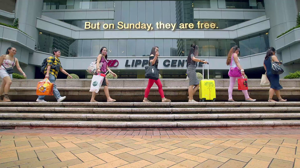 One Sunday night, Filipino women in Hong Kong turned on the glitz and celebrated their cultures, their sisterhood, and their individuality by participating in a beauty pageant by and for each other. Later that night, one of the contestants, Rudelie, returned home to the Chinese family for whom she works as a maid, only to be fired for violating her curfew. According to Hong Kong law, she now has 14 days to find a new job or face deportation.