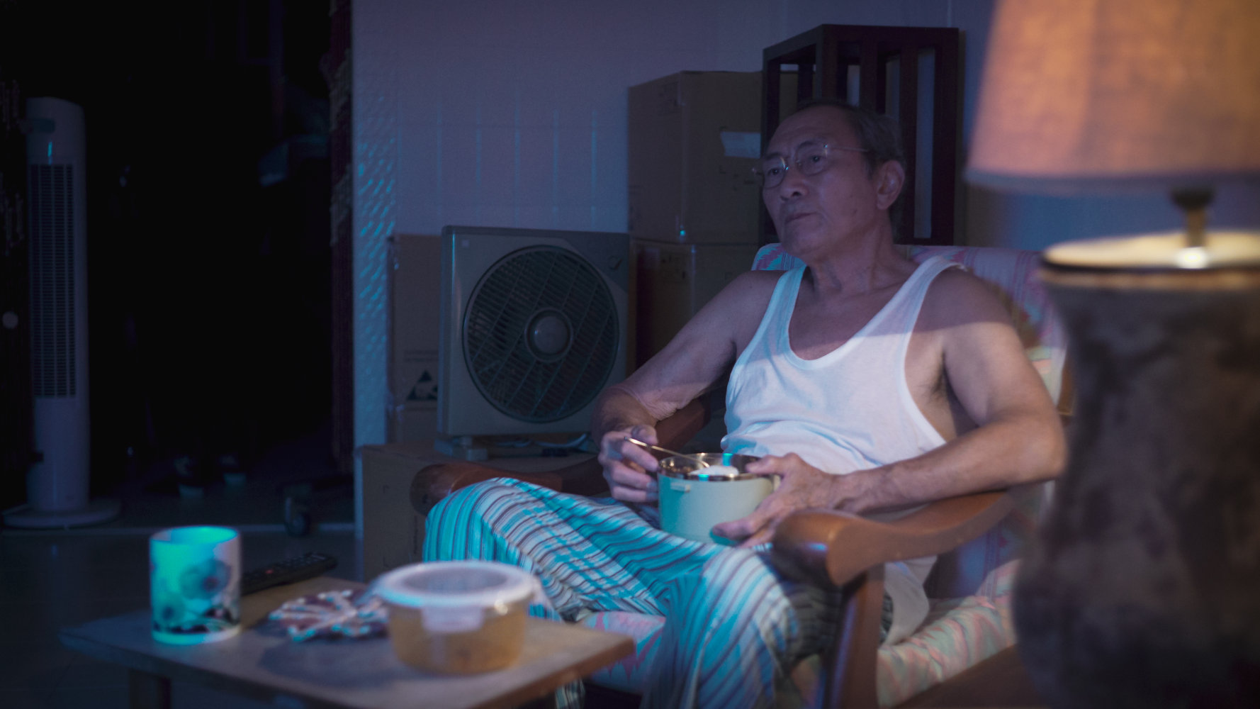 The heart of the film is memory, which is expressed in snippets of home movies (his son and daughter as children and his late wife) in the “sunlit” and grainy colours of Super 8, in contrast with the beautiful, crisp images of the present in Jeremy Lau’s cinematography. These fragments of family footage represent the subjectivity of memory, as a regret for time gone by and a bitter contrast with the present: this is shown in a small scene in a venue, when they are triggered by Hock’s saddened observation of a young man with his small son.