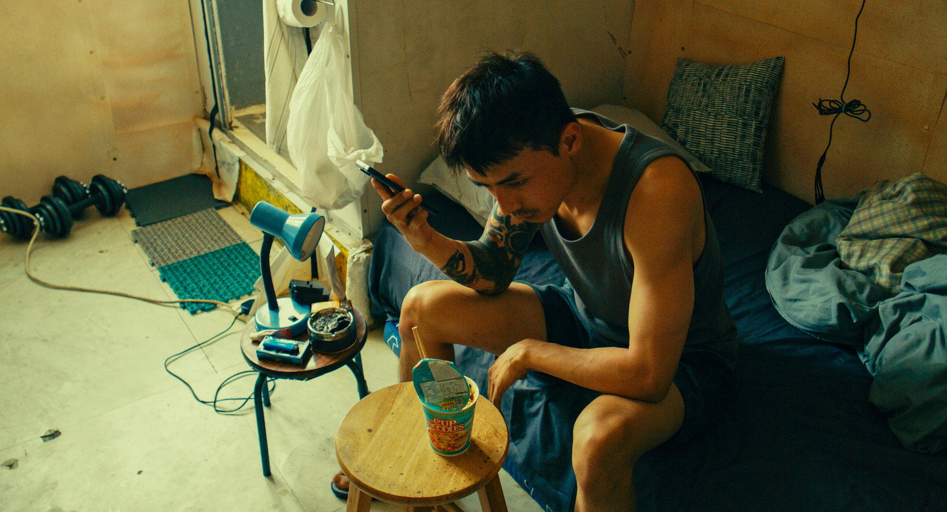 As Lung tries to dig out leads, writer-director-producer Yau busies himself cutting to scenes of a particularly troubled relationship. Nightclub worker and budding artist Hei (Anson Kong) hangs out sketching at a basketball court and there he meets Fai (Ansonbean), a morose loner who’s unpaid at a building site and struggling to rent his tiny flat in an industrial building. The two men bond and become an item, only to face intolerance and trying times.
